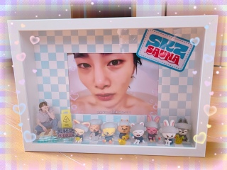 以前ヒョンビンしのアクスタ飾るのにいいなと思ってIKEAで買ったフォトフレーム!?を再利用して、サウナフィギュア飾ったらいい感じ🤭本当は銭湯っぽく富士山の写真とか飾れば良かったのかもしれんがお風呂にI.Nしてるイエニくんを飾らせてもらって、満足してひとりでニヤニヤしてる😜これならホコリもつかないし良かったー!