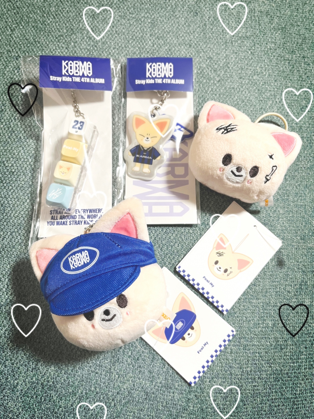KARMAのPOPUPグッズ うちにもようやく届きました♡めっちゃかわいい♡帽子かぶってるフォクちゃんは、ぶっちゃけ帽子なしの方がかわいい気がする(小声)購入特典トレカは🐥と🥟で、🦊は自引き出来ず😭ふたりはお婿に出して、イエニくんのは某所で狩ります😜