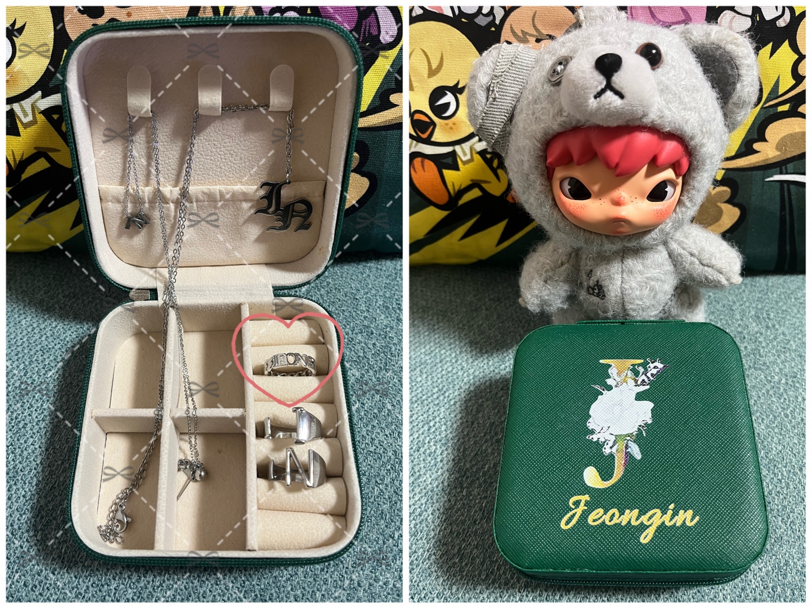 さきちゃんから素敵なバースデープレゼントをもらいました♡JEONGINな指輪とJEONGINなグリーンのアクセサリーケース💚アクセサリーケースを持ってなかったので超嬉しかったです⤴️⤴️リングもめっちゃうれしすぎる😭リング ま〜ゆぽいと思って選んでくれたらしくはい!わたしっぽいです😊この中のI.Nネックレス2本も去年の誕生日にさきちゃんからもらったものでとてもお気に入り♡さきちゃん🐹💜今年も素敵な贈り物をありがとう!さきちゃんらぶゅ♡