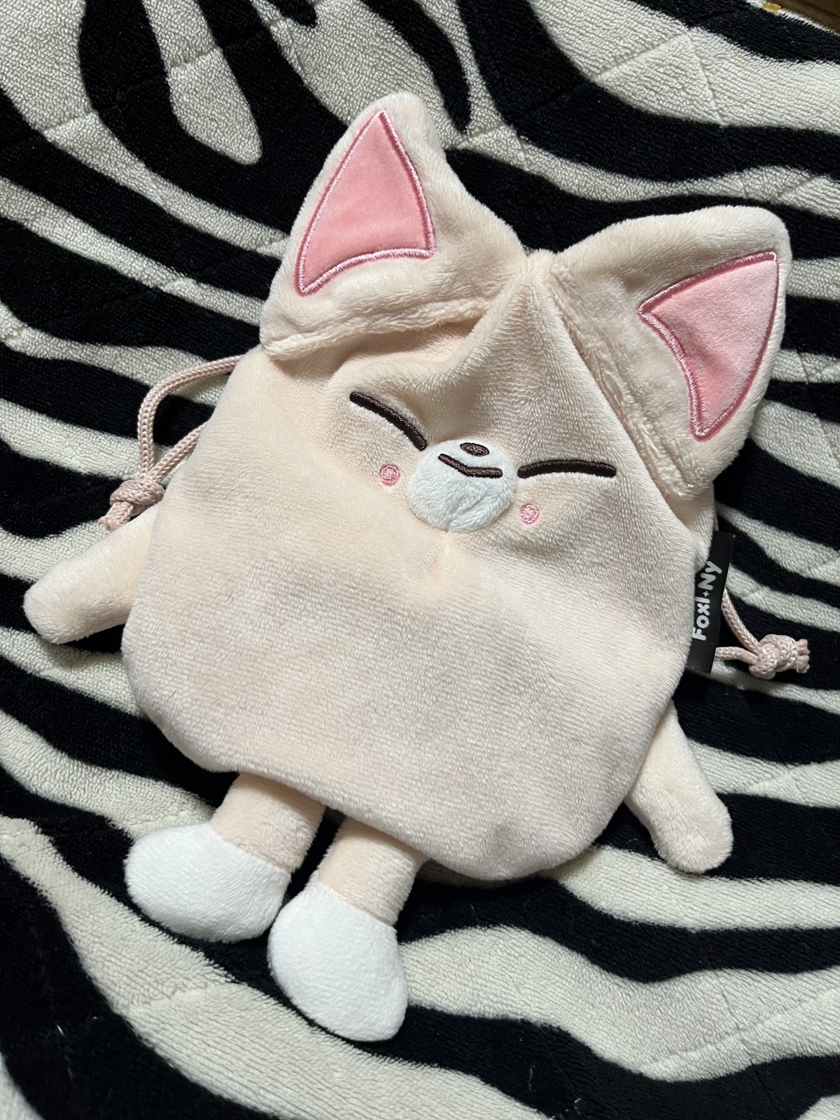 このフォクちゃんの巾着🦊POPUPで買ってからずっと使ってなかったんだけど、グッズはどんどん使わないとアカン!主義なので、今🍬🍭入れに使ってて、めっちゃかわいくてお気に入り♡買って良かったー!手足がかわいすぎる